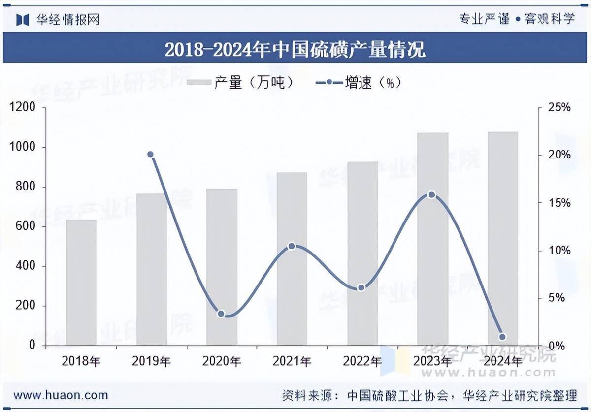 硫磺主要是用于制备硫酸,被应用在磷肥制造前端的磷矿浮选,磷肥需求增长对硫磺形成了明显的带动。据中国硫酸工业协会统计,2024年我国硫磺总产能1786万吨,同比上升4.9%,延续了快速增长的趋势,比2021年增长了248万吨,增幅达到13.9%。2024年我国硫磺总产量达到1081.7万吨,同比提升0.8%。